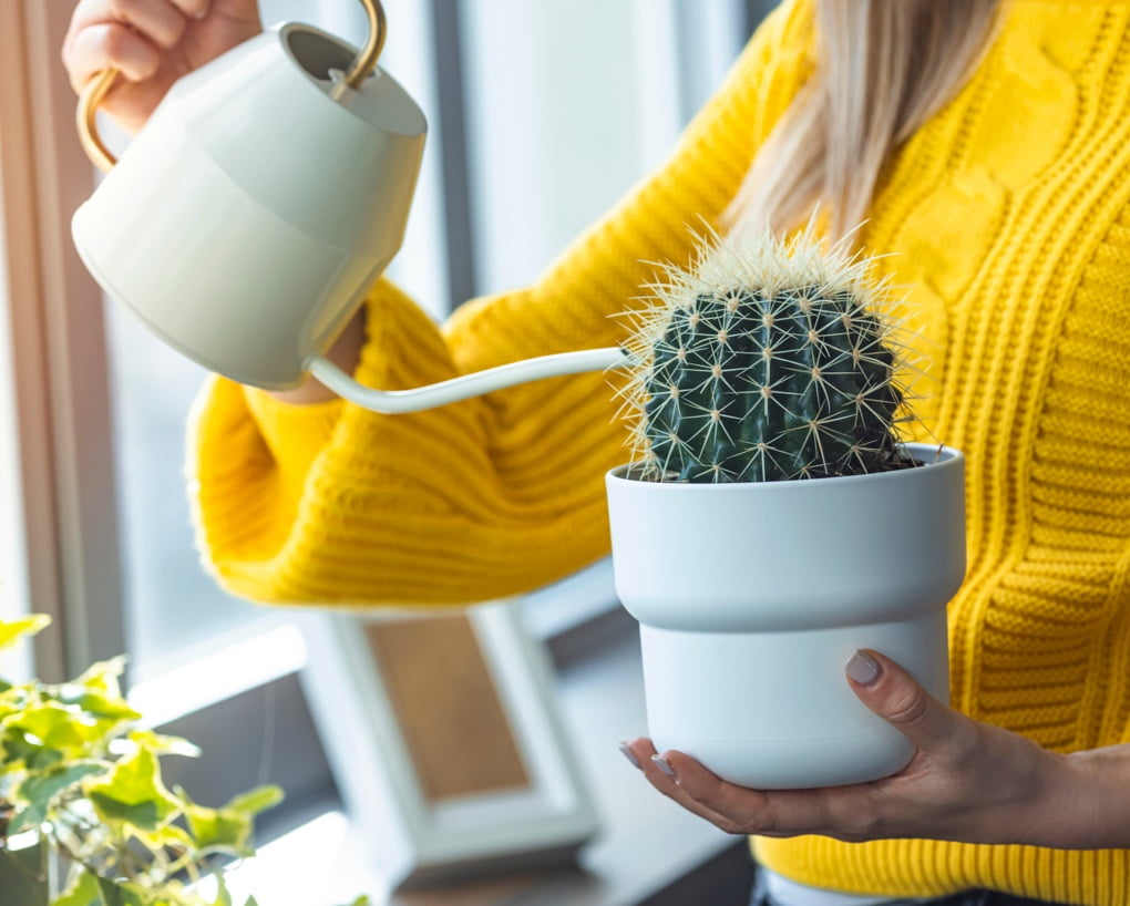 Water alkaline-loving plants such as desert plants that live in a high alkaline soil.